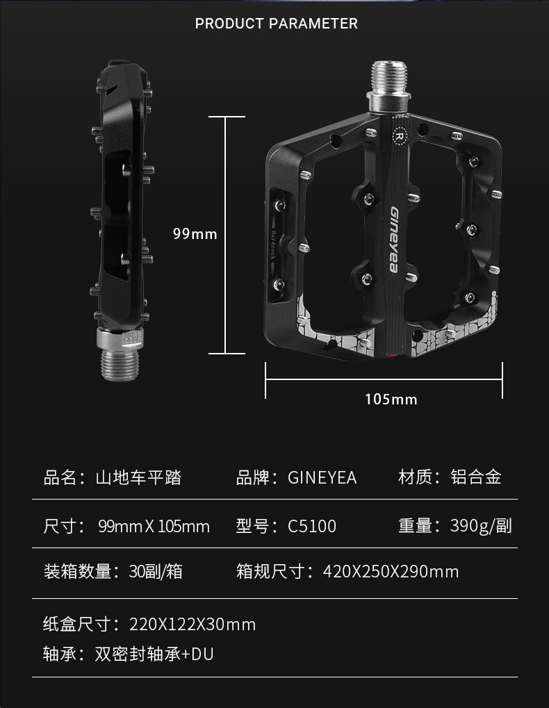 Gineyea碳纖維腳踏自行車公路車山地車防滑釘踩面鈦合金軸腳踏