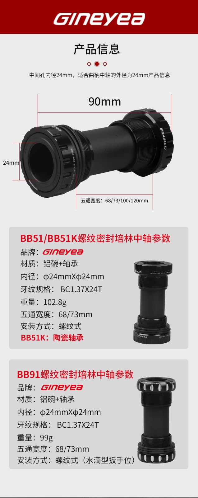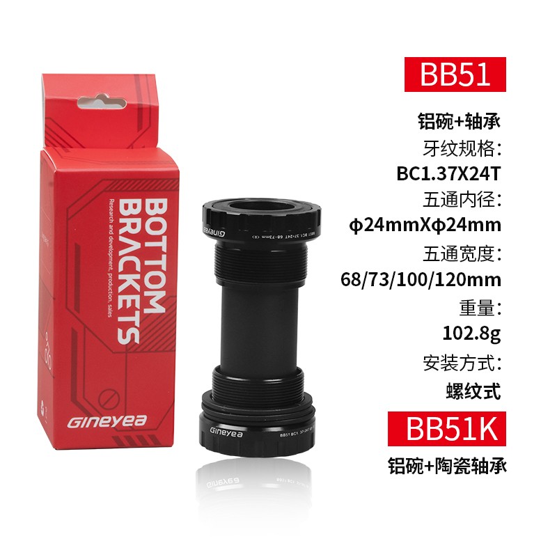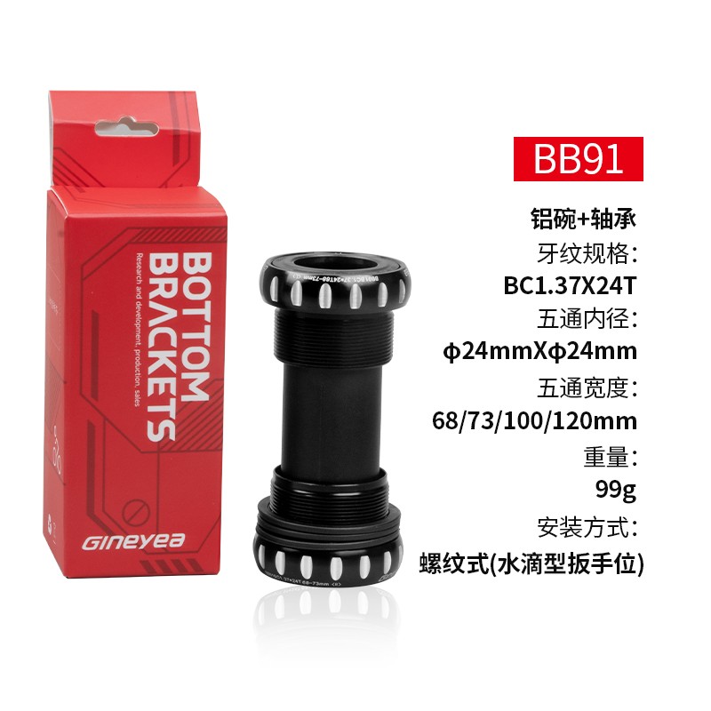 景曄山地公路自行車培林中軸 中空一體旋入式螺紋中軸BC1.37x24T