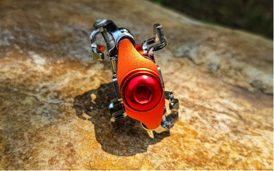 彈簧張力調(diào)整螺絲位于扣片后方。彈簧增加導(dǎo)流槽方式卡緊,長時間越野騎行也不會造成彈簧松動。