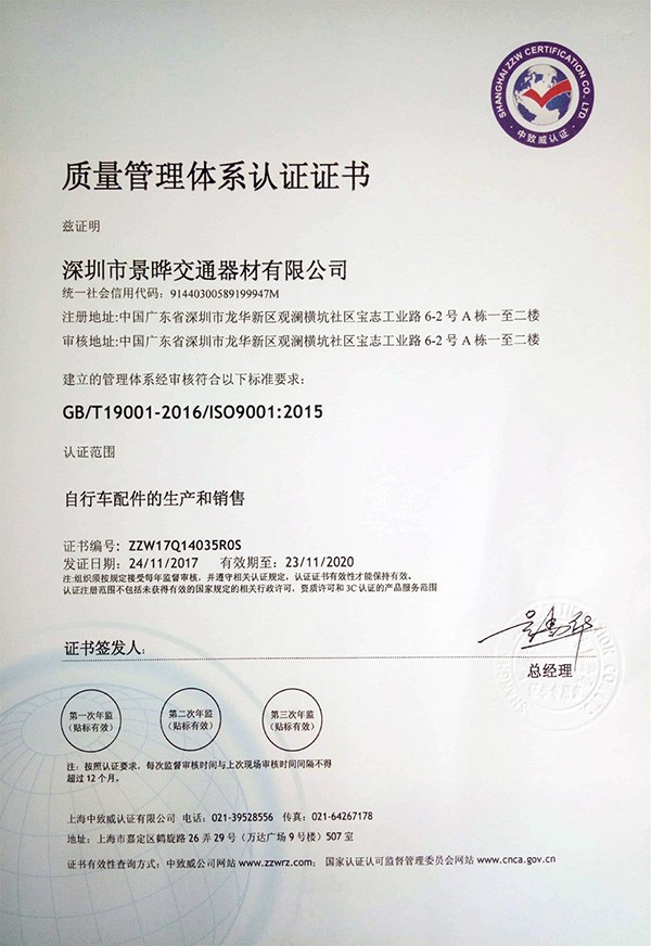 在公司員工的不懈努力下,經過認證公司專家的全面、嚴格、細致的指導和審核,確認我公司質量管理體系符合ISO9001:2015質量體系標準的要求,并于2017年4月21日,向我公司正式頒發了ISO9001質量管理體系認證證書。