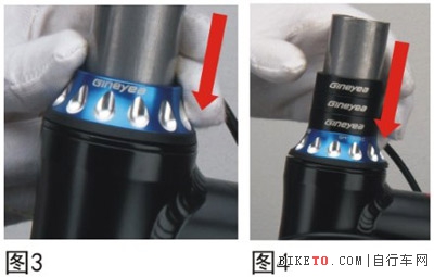 3.1 先把上碗放穿入碗組工具,注意碗的方向,上碗碗口向上,然后再穿入車架頭管內,如圖2、圖3、圖4。