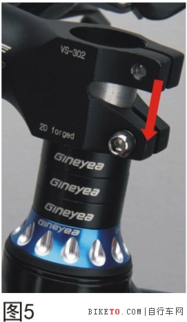 4.5 裝入把立器,注意:一般要求都是把立器要高出于前叉立管3-5mm,如圖5。
