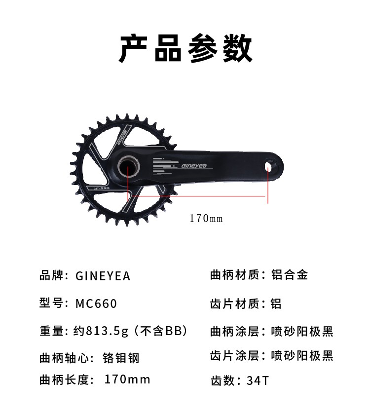 景曄自行車曲柄土坡硬尾GXP單盤山地車正負齒36T改裝套件