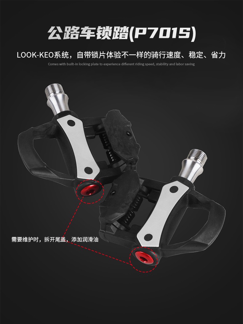 景曄公路車鎖踏三培林碳纖鈦軸自行車腳踏兼容Look系統附鎖片配件